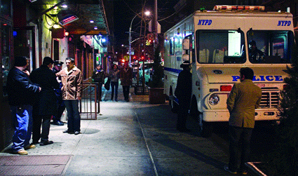Inundated by complaints about noise from raucous bargoers and taxi horn honking, police blitzed Avenue B with a full-scale “shock-and-awe” operation last Friday night.
