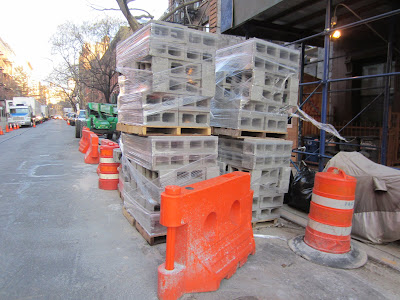 After the various work crews arrived today for their respective jobs, a resident along here noted, "The street is practically nonexistent as the Haddad's vans (where is Justin Timberlake?) are taking over from the Schwimmer cranes, making it impossible for [the construction workers] to close the street at will, as they often do – for deliveries, etc."