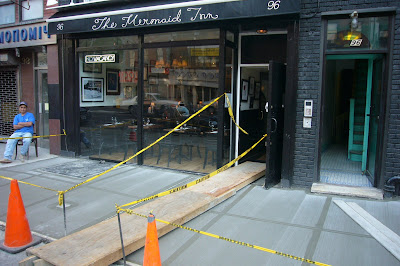 Shoot! Someone was on guard last evening to watch and protect the fresh patch of sidewalk against initial-engraving vandals. I was hoping to engrave "free the lobsters" and "lobster killers" into the sidewalk! (By the way, I have no idea whether they even serve lobster.) Or, at the very least, "EV Grieve11!!!11"
