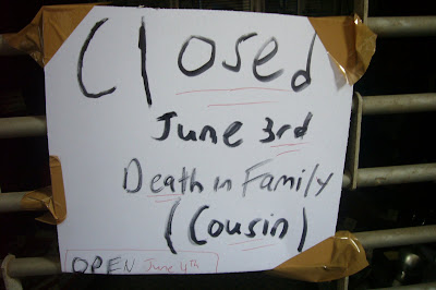 Along Nassau Street. There's probably a perfectly reasonable explanation as to why the shopkeeper decided to let his or her valued customers know that it was a cousin who passed and not an aunt or uncle or someone else. (And does this inclusion feel like an afterthought?)