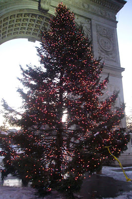 The Christmas tree at Washington Square Park looks lovely....well, from a distance, anyway....Get a little closer....