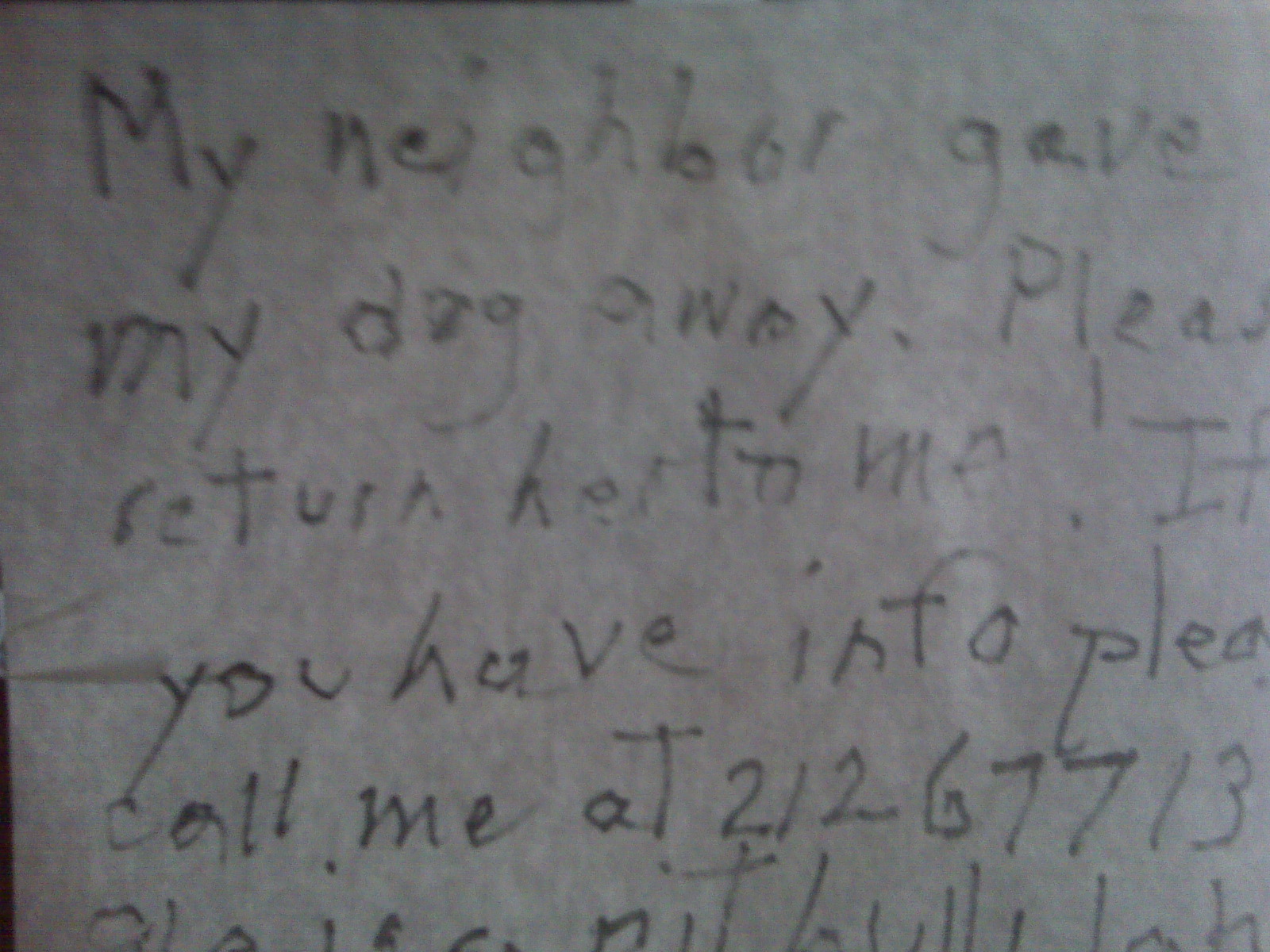 Then! On Avenue A between Ninth Street and St. Mark's Place.... We're curious why this woman's neighbor gave her dog away....