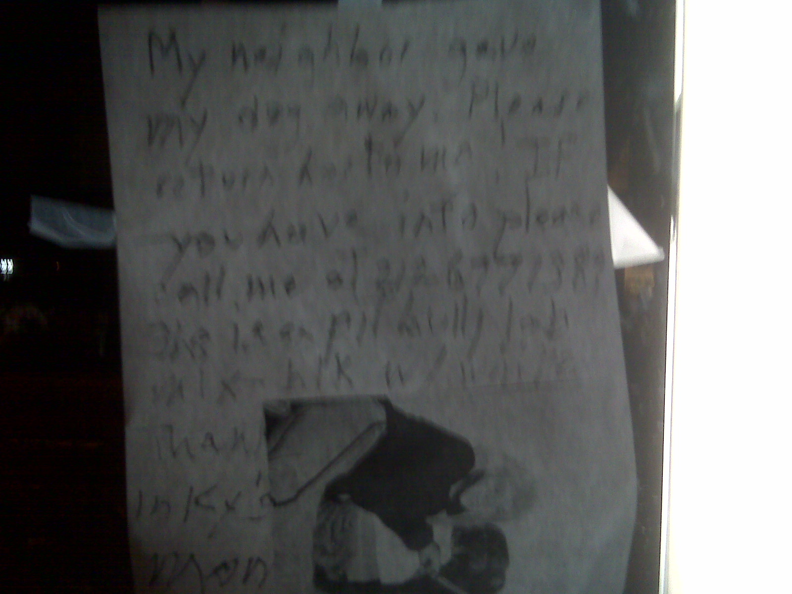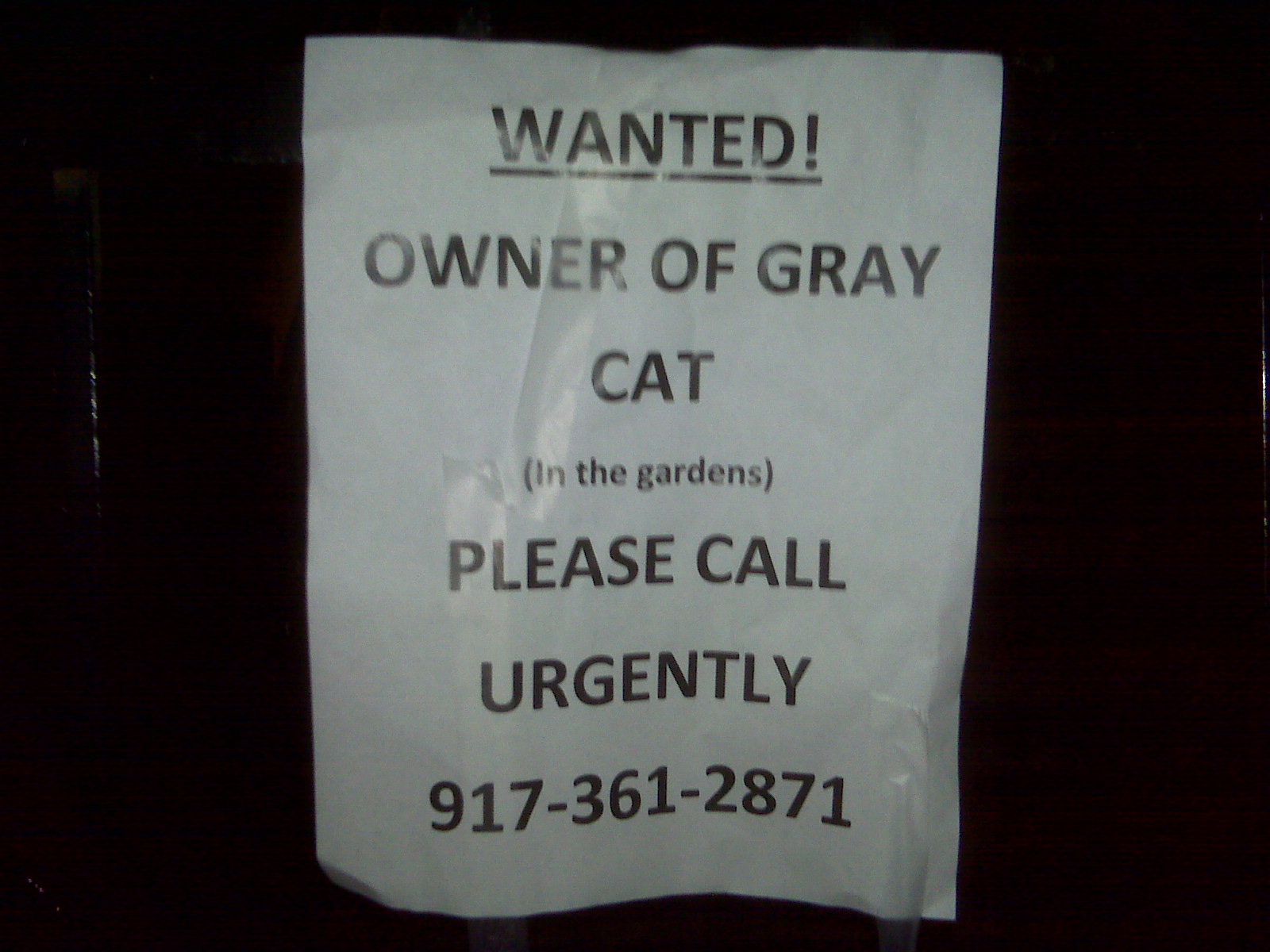 EV Grieve reader Anna had an interesting pet-related walk home last evening... First this "urgent" sign on 12th Street between Third Avenue and Second Avenue... We're curious about the urgency....