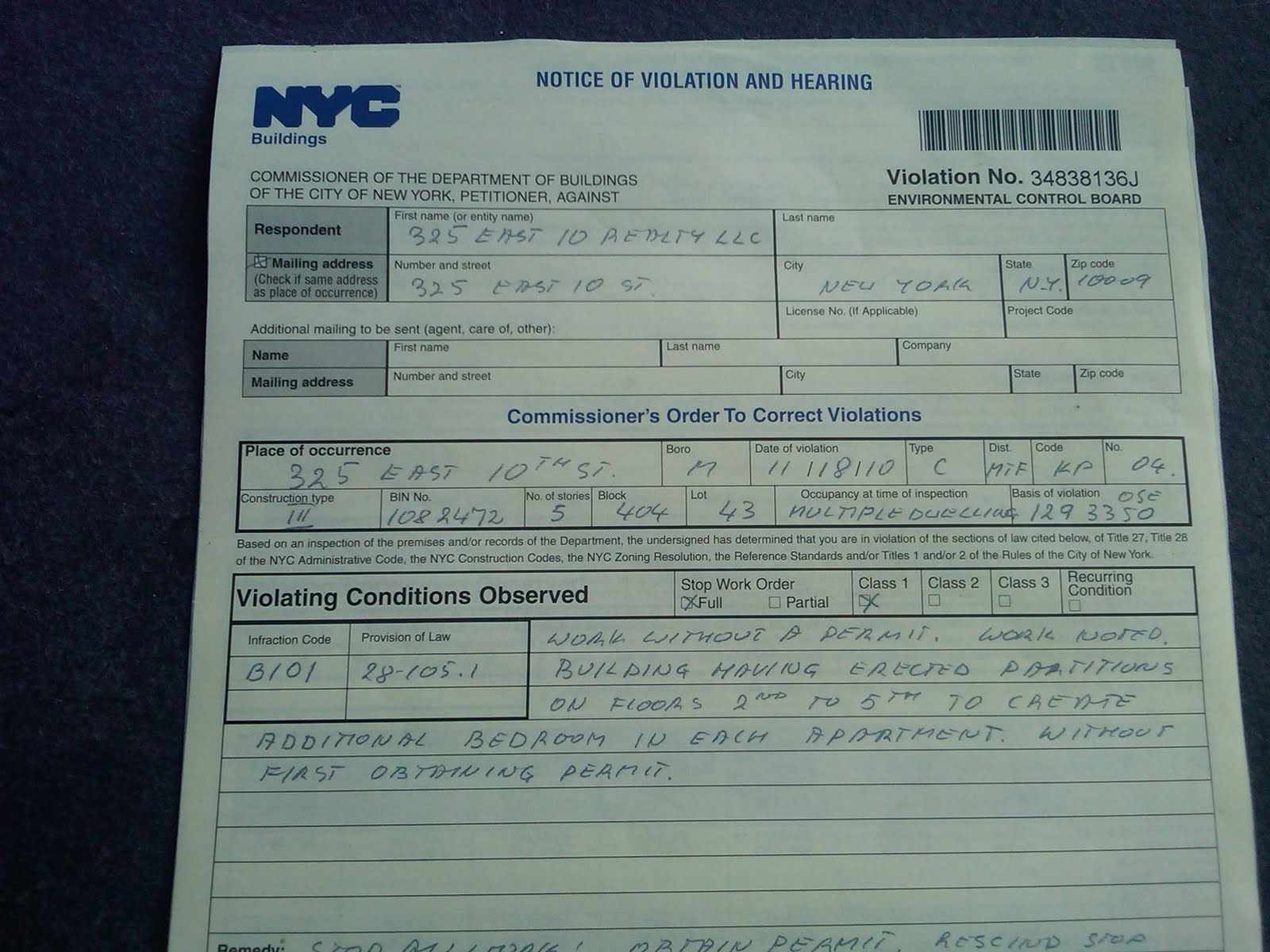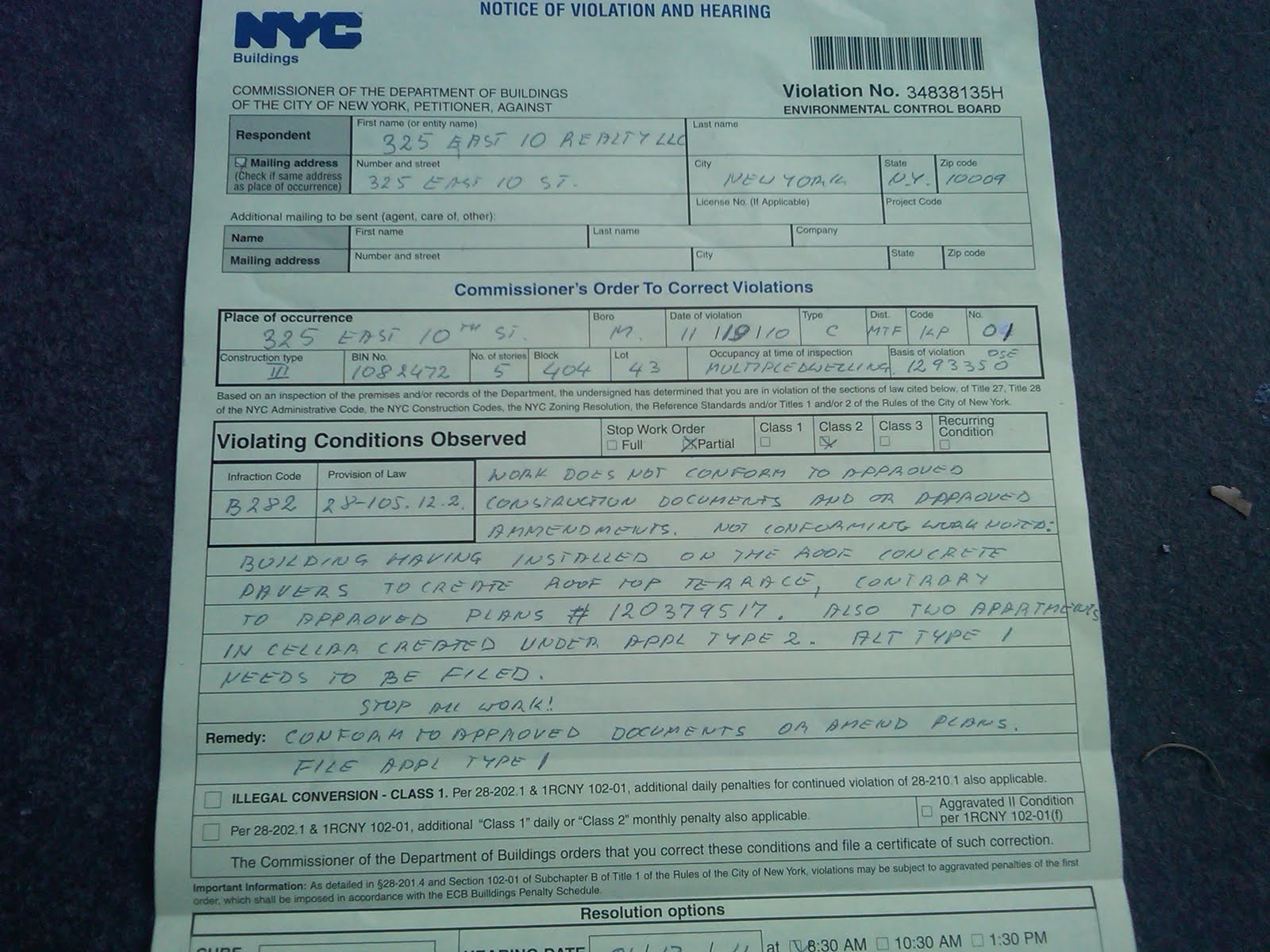 Among the violations cited by the all-caps crew at the DOB: "OCCUPANCY CONTRARY TO DOB RECORDS,WORK DOES NOT CONFORMS TO APPROVED PLANS."