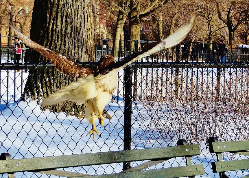 The red-tailed hawks don't mind the snow in Tompkins Square Park (Gog in NYC)