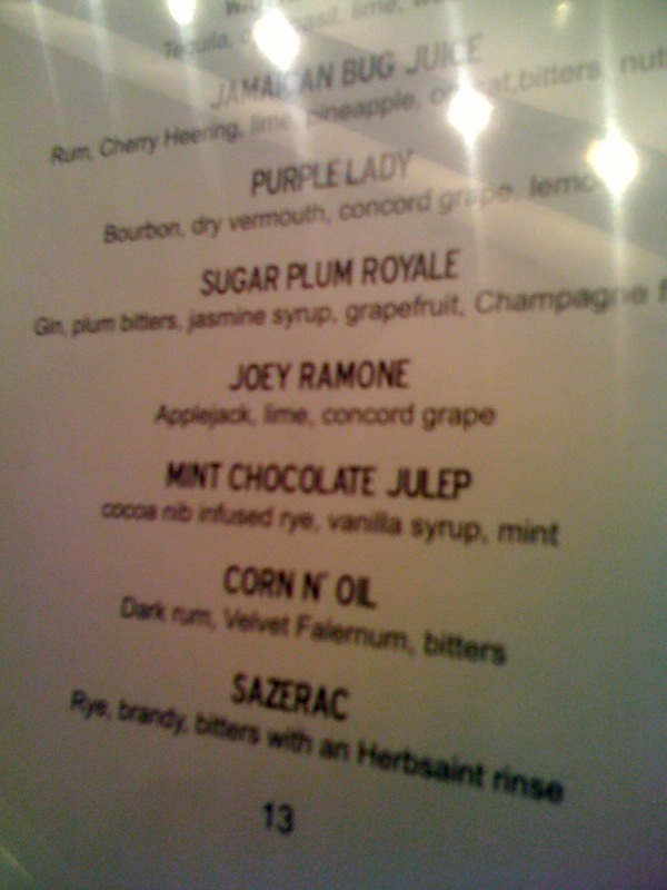 Peels opened to much fanfare in August 2010. Their early drink menu included The Joey Ramone … made with apple brandy, lime juice and concord grape juice (or concord grape wine??)